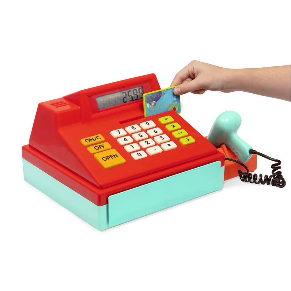 La caja registradora viene con toneladas de accesorios y características realistas para horas de juego imaginativo. Primero, tu hijo puede hacer sonar todos sus juguetes con el escáner de juego con pitido real. Luego, pueden sumar el total en la calculadora funcional. Por último, es hora de pagar: este juego viene con una tarjeta de crédito, monedas y facturas de juguete para que tu hijo practique el manejo del dinero. Hay mucho que aprender con esta caja registradora de juguetes. ¡Así que presiona, desliza, recuenta y juega un poco más!