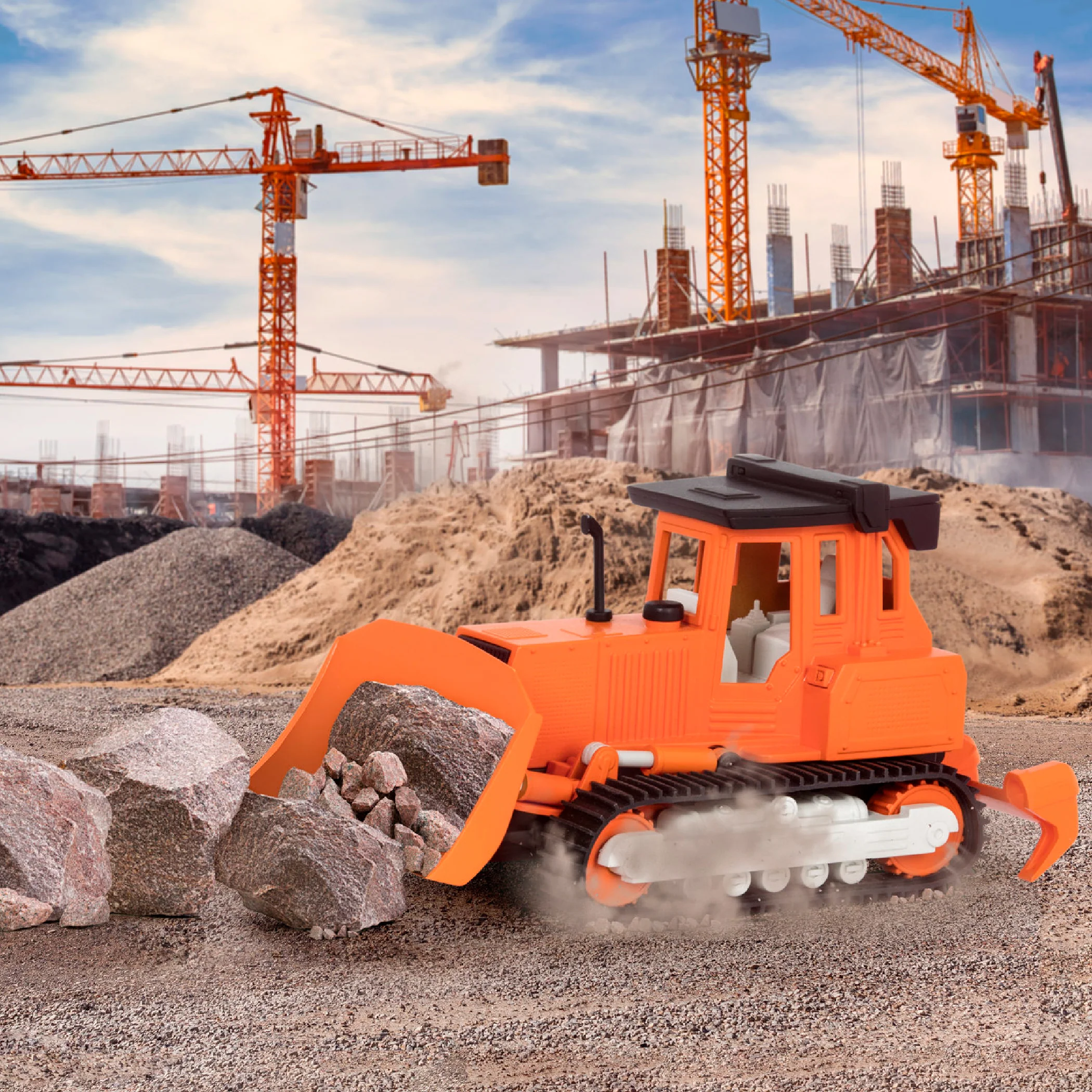 ¡A excavar se ha dicho! Con sonidos y un diseño realista, cuenta con increíbles detalles, tales como un rastrillo y una pala. Este camión pertenece a la serie micro de Driven.