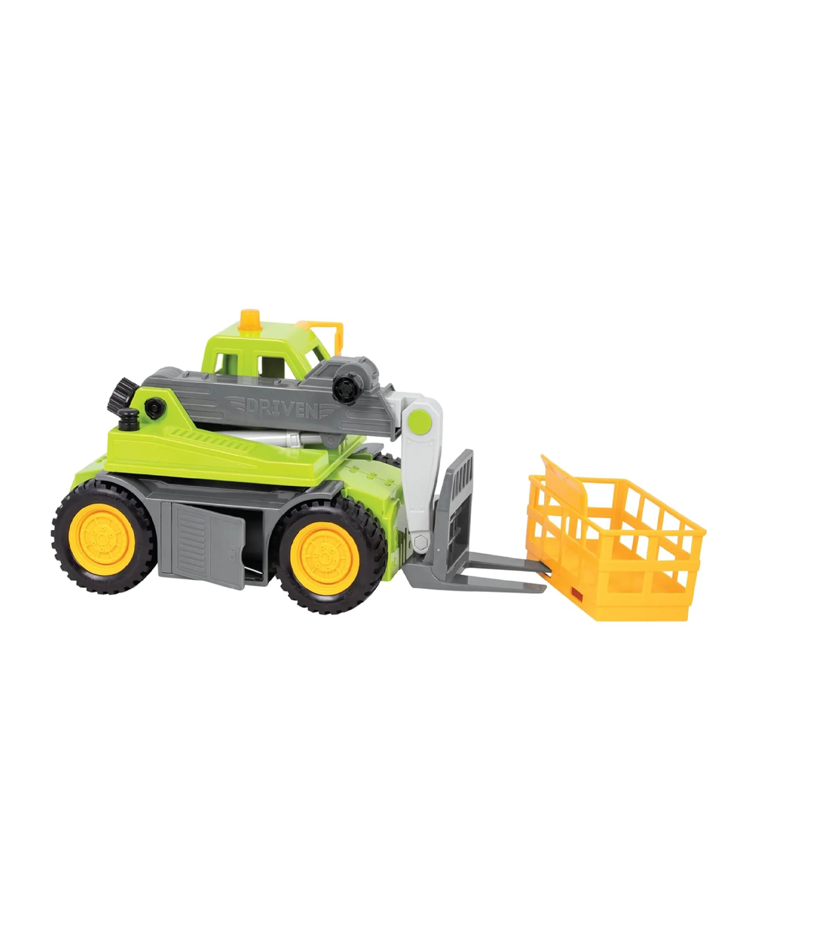 ¡Un camión multifuncional! Con sonidos y un diseño realista, cuenta con increíbles detalles, tales como un compartimento que se abre y que puede utilizarse para almacenaje, brazo extensible y luces led. Este camión pertenece a la serie mediana de Driven.