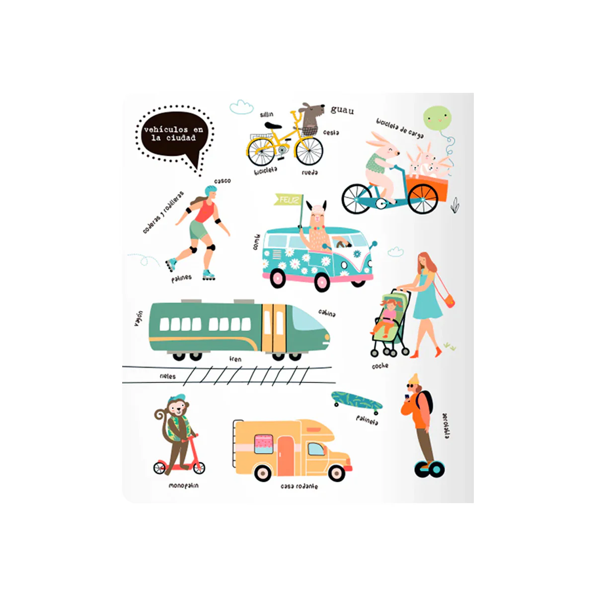 ¡Explora el mundo de los vehículos con "Todos los vehículos! Un libro resistente, lleno de ilustraciones vibrantes y nombres de transporte, perfecto para que los niños aprendan y se diviertan.