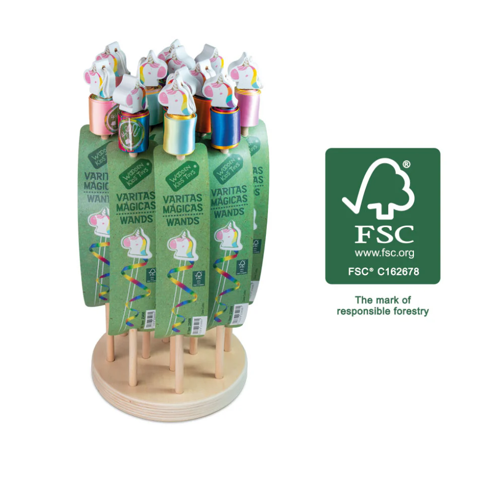 Esta varita de madera con cintas de colores transforma cualquier momento en un juego mágico. Al moverla, las cintas giran y vuelan, inspirando a los niños a bailar, inventar coreografías o convertirse en personajes de cuentos. Ideal para el juego libre, la expresión corporal y la creatividad sin límites.
